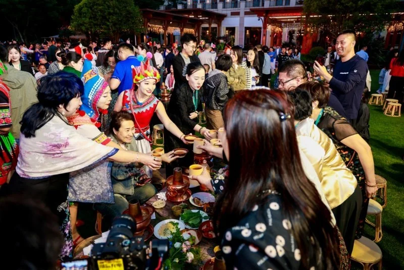 在春城的落日余晖下,七彩茶人们相聚七彩家宴,品味地道云南特色牛汤铜锅美食,在欢歌热舞中,领略到了云南少数民族的热情,在熊熊燃烧的篝火旁围跳欢笑,在一声声为七彩云南好茶而举杯的欢呼中,伴随着七彩家宴,本次大会圆满落幕。